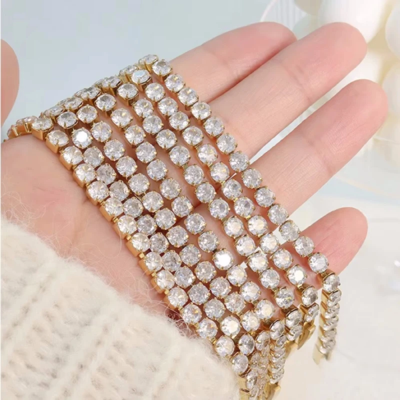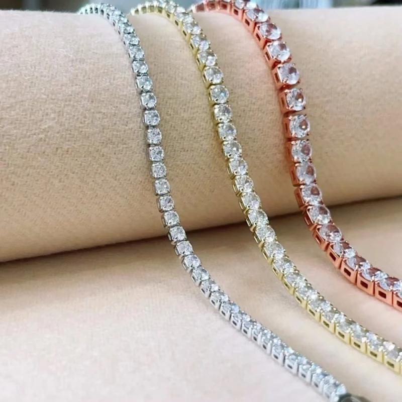 New 925 Pure Silver Rose Gold Bracelet Shining Classic Hip Hop Crystal Tennis Bracelet Women's Jewelry Fashion Wedding Gift