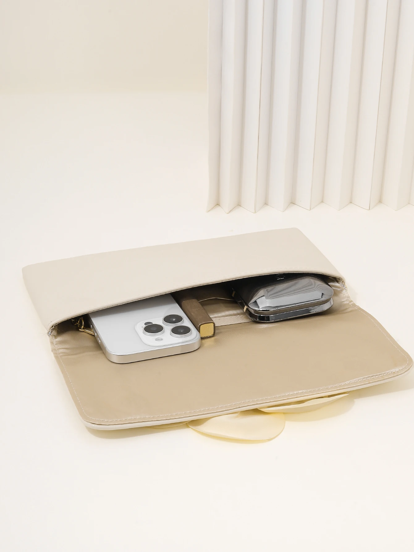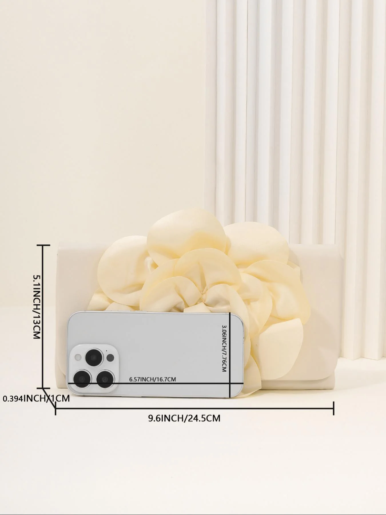 This elegant women’s clutch combines floral charm with a refined, professional look, making it a perfect accessory for business and formal settings. Crafted from smooth PU material, it features delicate floral appliqué details that add a subtle touch of femininity while maintaining a polished appearance. Its sleek clutch shape keeps the design clean and sophisticated.