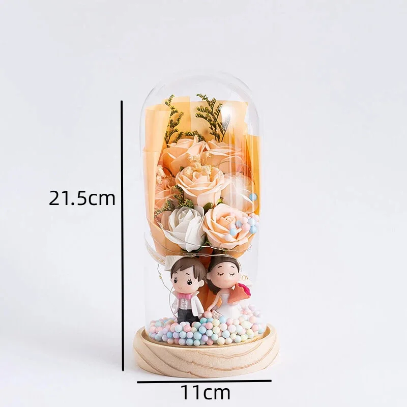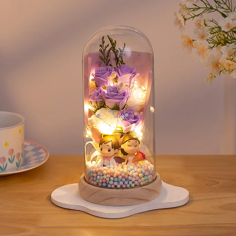 Valentine's Day Gift Soap Flower Glass Cover Night Light Birthday Gift Practical for Girls High Sense of Tanabata Bouquet