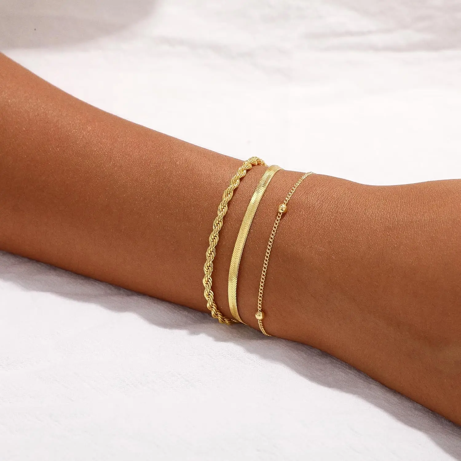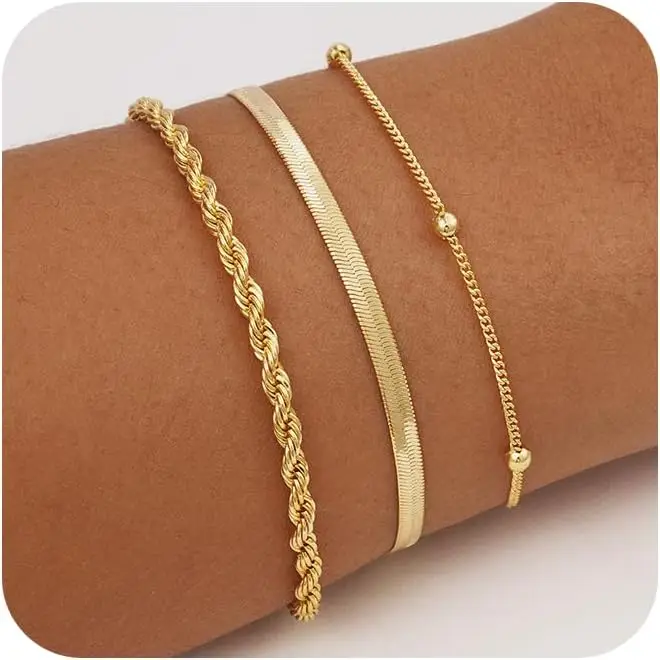 Women Gold Bracelets Non Tarnish Trendy 14K Gold Plated Waterproof Stackable Bracelets Stack Lightweight Jewelry Gift for Women