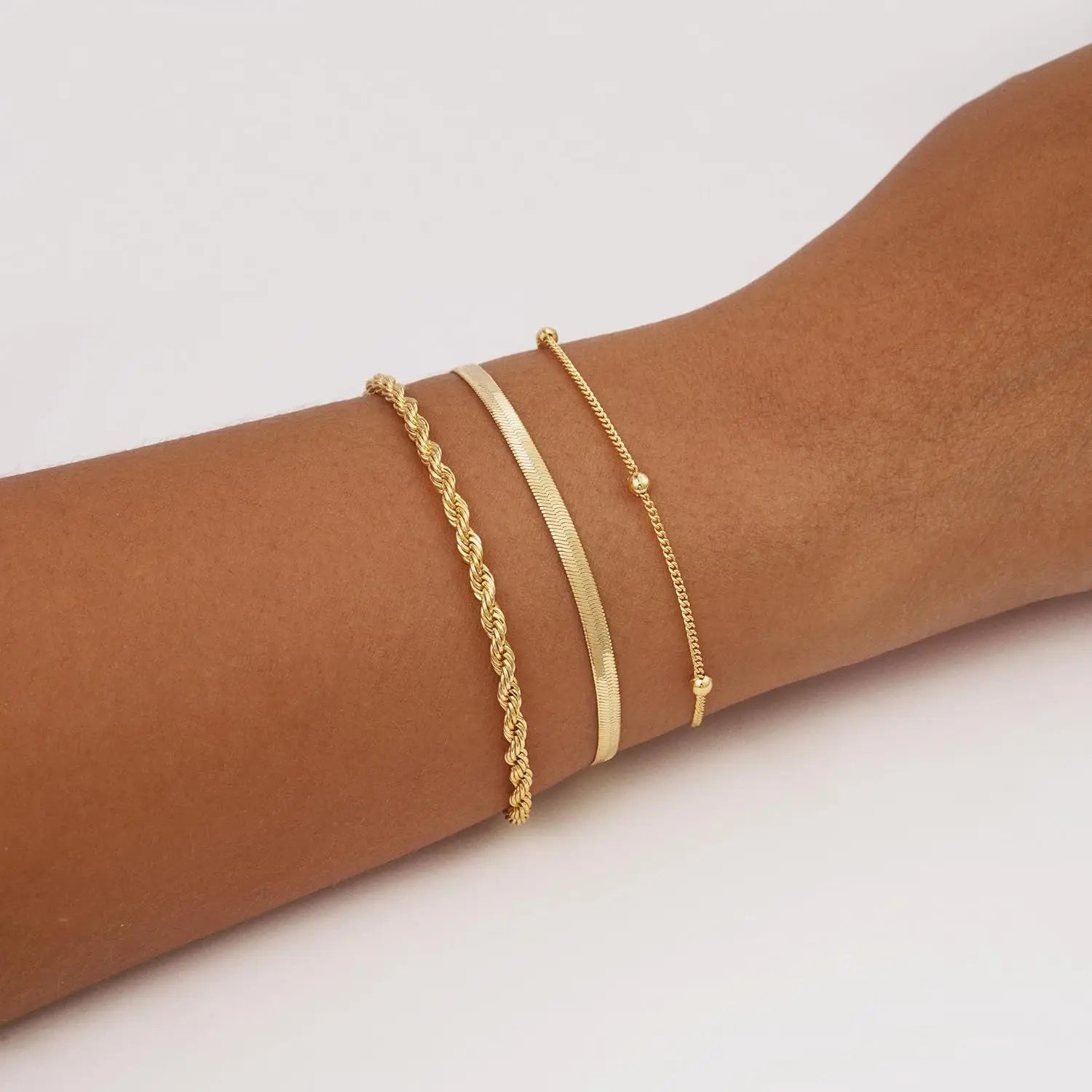 Gold Bracelets for Women Material: This bracelet stack is made of brass plated with 14K gold, which is a good material and skin-friendly. This bracelet has a smooth surface and is suitable for everyday wear